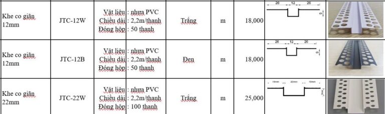 Kích cỡ và báo giá nẹp ron âm trần Hoàng Phúc