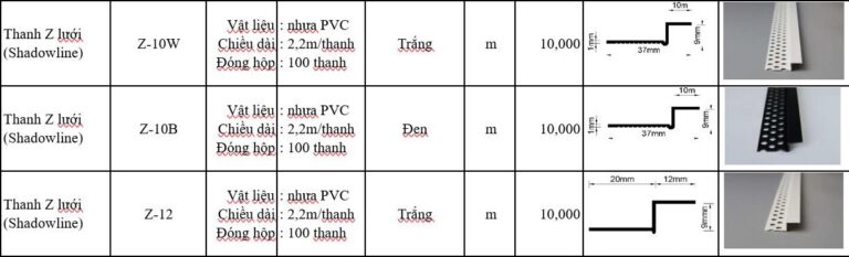 Kích cỡ và báo giá nẹp Z viền trần Hoàng Phúc
