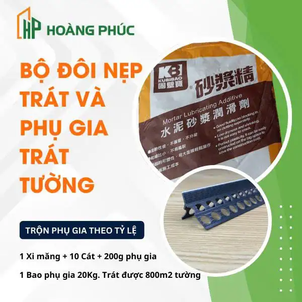 - Nhằm phục vụ nhu cầu thi công hoàn thiện, đảm bảo về mặt thẩm mỹ, kiến trúc – công năng sử dụng của công trình, chính xác đến từng milimet Vật Liệu Hoàng Phúc đáp ứng cung cấp ra thị trường các loại nẹp trát tường: Phụ gia trát tường chống nứt – Bộ đôi Nẹp trát tường, Nẹp tách khe vật liệu, Nẹp chân tường, Nẹp ngắt nước mưa, Nẹp chỉ âm tường…….